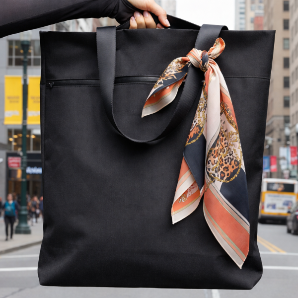 Scarfen, särskilt i siden eller med tryck, knuten runt ett väskhandtag är ett populärt sätt för designers och stylister att snabbt lyfta och personifiera en handväska.